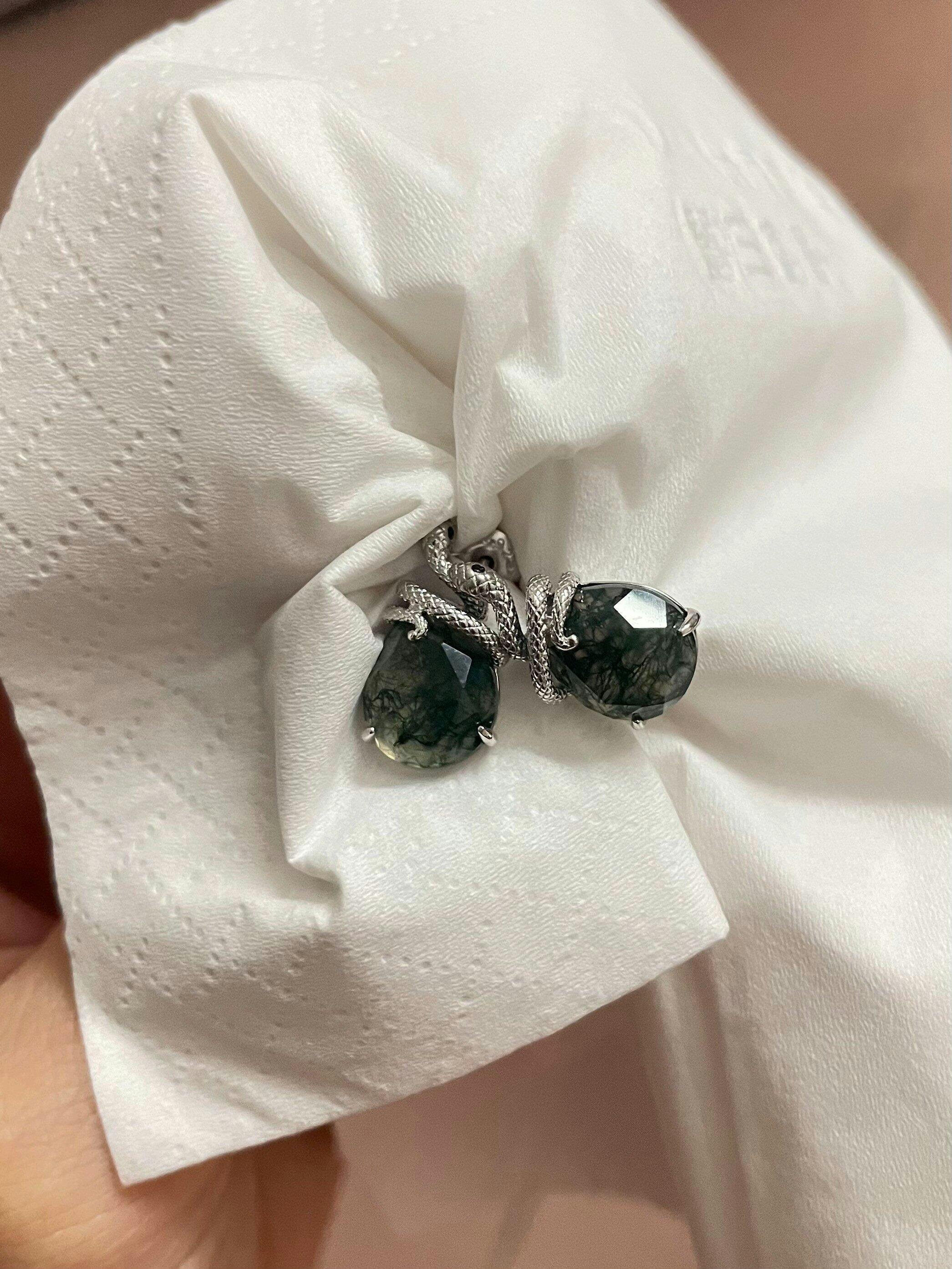 Ce collier en agate mousse taille poire présente un motif de serpent finement sculpté, inspiré par la beauté intemporelle de la nature. Les motifs uniques de chaque pierre évoquent un mystère et une élégance antiques. Parfait pour les amateurs d'art classique, ce bijou crée un lien subtil et raffiné entre celui ou celle qui le porte et la nature.