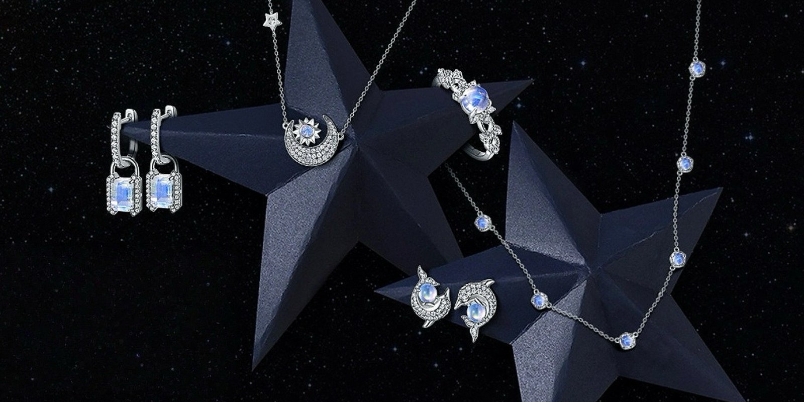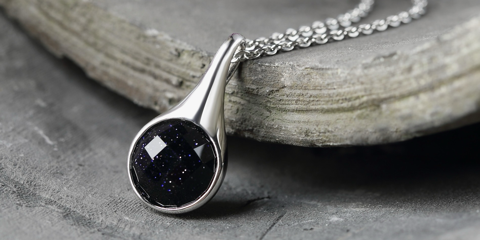 Kite Cut Blue Sandstone Starry Night Engagement Ring Set